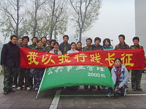 2005级公共事业管理班统一服装,进行了徒步登山活动