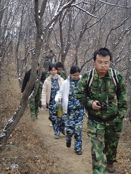 活动前一天晚上下了场小雪,清晨的百望山上积雪未退,同学们冒着寒冷登山,颇有当年长征之意。