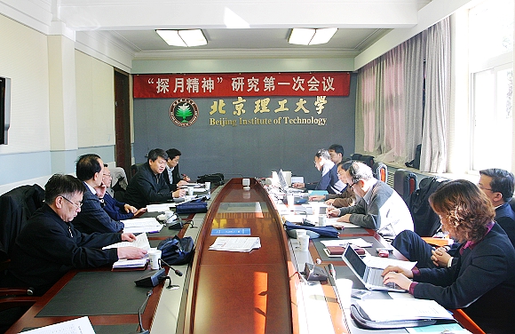 2007年4月6日,“探月精神”研究第一次会议在我校主楼二层会议室召开。会议由国防科工委机关党委巡视员苏青云主持,国防科工委探月中心副主任郝希凡、国防科技工业相关领域专家、我校党委副书记赵平、军工文化教育研究中心张剑军、贺亚兰等部分成员参加了会议。