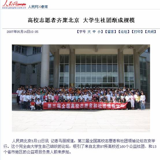 高校志愿者和社团领袖论坛旨在加强高校爱心志愿公益类社团骨干公益意识培养及能力建设。其主要定位于公益意识培养,能力建设,学习经验,相互借鉴,资源共享,共谋发展迄今为止论坛已成功举办两届,共有160余名社团负责人从中受益。