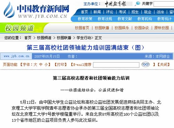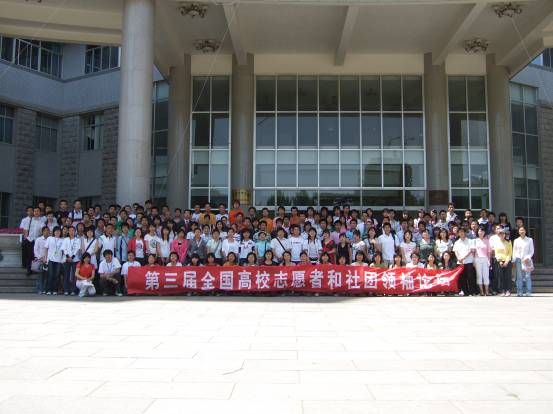 下午4时30分,第三届全国高校志愿者和社团领袖能力培训结束.青协代表和主办方代表一起给参加培训的志愿者和社团领袖颁发培训证书,并在中心教学楼前合影留念。