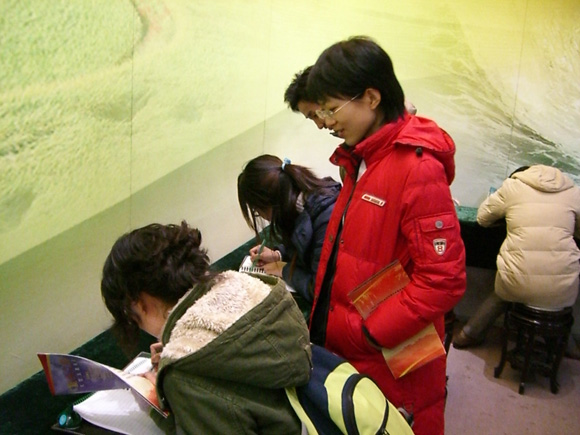 参观结束,同学们感触深刻。四位同志迫不及待地把感想写在了留言本上。