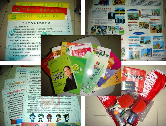 学生党支部为村里准备的海报、书籍和运动娱乐器材