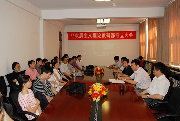 2009年6月10日上午,德赢AC米兰官网马克思主义理论教研部成立大会在主楼四层会议室举行。参加本次成立大会的有党委书记郭大成,党委副书记侯光明,及宣传部、人事处、研究生院、学生处等相关部处的领导,马克思主义理论教研部的全体教师和学工处的部分辅导员参加了本次成立大会。会议由人文与社会科学学院分党委书记张红峻主持。