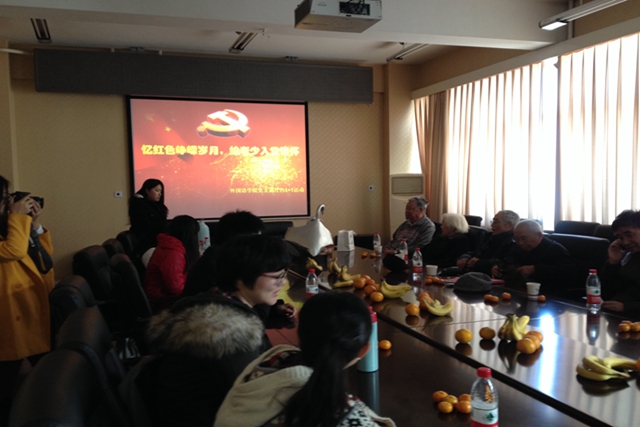 下午2时,支部共建活动准时召开。首先,外国语学院2011-2013级党支部书记刘春游代表学生支部发言,希望学生党员能以此为契机,通过聆听老教授们的切身经历和真诚教诲,能有所启发和收获。之后教师党支部书记张锦州老师介绍到场的老师们。此次参加活动的老师均为外国语学院退休的老干部,年龄最大的已有88岁,他们都曾在自己的教学岗位上兢兢业业,对党、国家和学校都有非常深厚的感情。