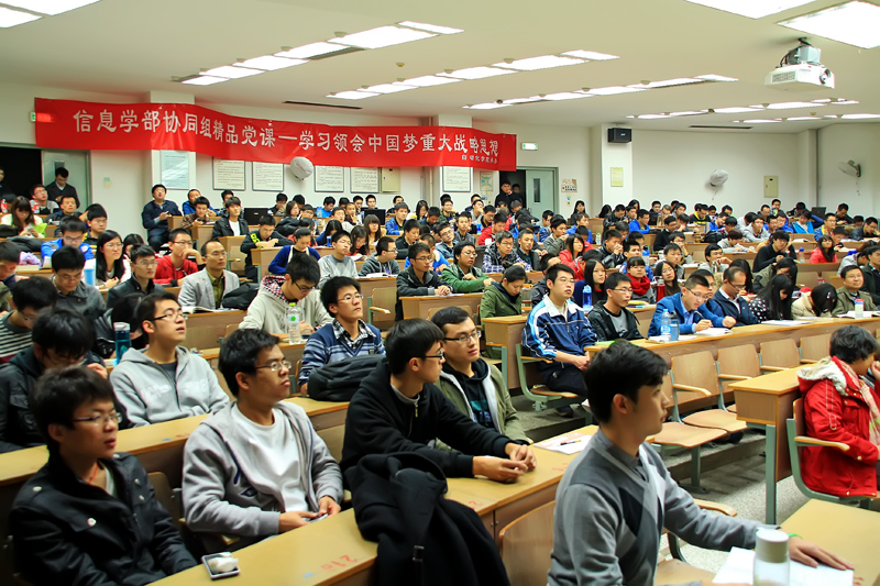 为进一步做好预备党员和入党积极分子的教育工作,进一步宣传好、贯彻好、实践好中国梦这一重大战略思想,11月8日晚七点,自动化学院所承办的信息学部协同组精品党课在中关村校区中心教学楼307教室顺利举办,本次党课邀请到了空军指挥学院政治系扈树生教授作为主讲嘉宾,光电学院、信息与电子学院、自动化学院和计算机学院的学生党员和入党积极分子,以及信息协同组各学院副书记副院长出席了此次党课。
