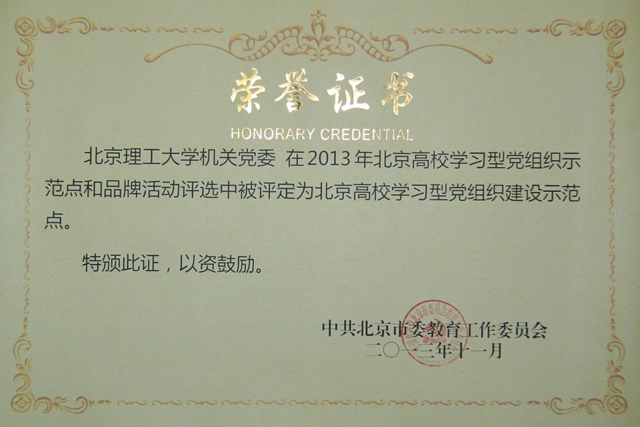 北理工在2013年北京高校学习型党组织建设示范点和品牌活动评选中勇创佳绩