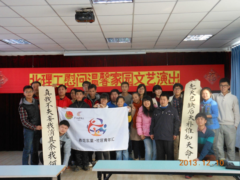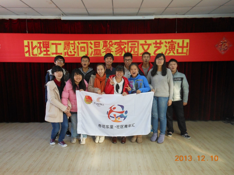 2013年12月10日,作为校团委与燕山杏花东里社区青年汇共建活动的一部分,基础教育学院信息二部团总支组织自动化学生会良乡分会的志愿者们来到了杏花东里“温馨家园”,与那里的智障人士以及社区居民共同献上了一场别开生面的文艺演出。