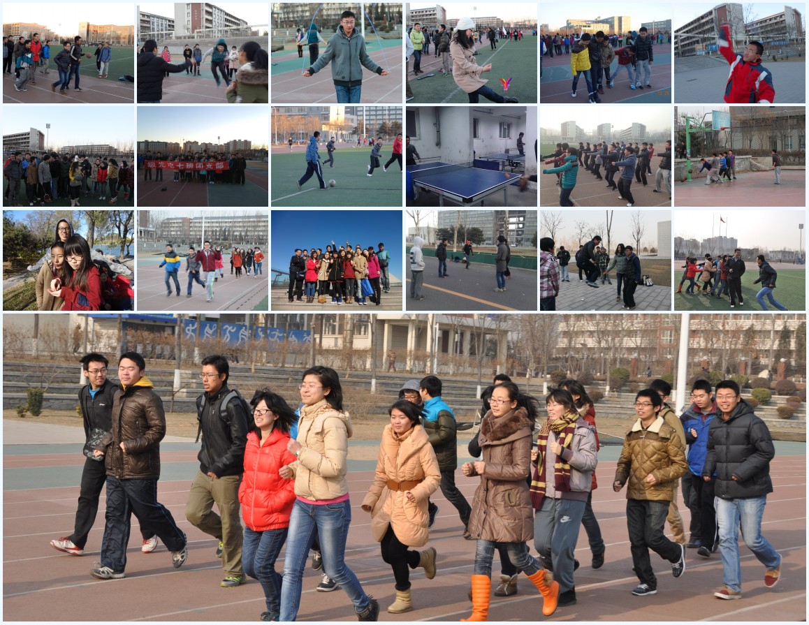 根据团支部团员的时间安排,16个团支部分别开展了团日活动。同学们在活动中表现出了极高的运动热情,无论是清晨还是傍晚在校园每一片运动的场地上都可以看到信息一部的同学们运动的身影。欢笑更是这次体育运动的主旋律,享受运动、合理运动保持阳光心态,健康快乐学习正是本次团日活动的根本理念。本次的团日活动也充分体现了信息一部团员的优良品质,在活动期间虽然参与人数众多,但是整体表现的秩序井然。有的团员还能做到把自己的器材借给别人,让其他人也有运动的机会。