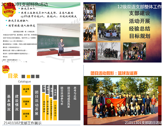11级国际经济与贸易2支部打破了年级的界限,主动与低年级的团支部进行交流,帮助他们解答学习生活中的困惑;在团支部内部开展心理咨询活动,创造团支部内部健康阳光的氛围;组织“大学毕业,我们该做什么”的主题座谈会,规划未来、畅聊愿景、互相鼓励、共同努力。13级工商管理1班团支部在宣传工作方面能够敢于创新,在向大家展示的一段视频中,记录了团支部一年来的点点滴滴、每一个团员的风采,风格绚丽,极富吸引力,取得了良好的宣传效果。12国贸理科支部为了取得更好的团日活动效果,在活动策划阶段就将团员的意见吸纳进来,精心设计、参与互动,真正地做到“为了团员而举办活动”。12级国际经济与贸易双语支部针对目前广受关注的“就业难”问题,走出校园、有效利用各方资源,特邀请前程无忧校园项目经理、市场经理、全球职业规划师、CCT计划青年导师梁泓女士给团员青年进行“职业规划讲座”,给他们答疑解惑、指点迷津,帮助团员青年对未来进行探索。11级体优支部在去年的团支部思想引领教育方面增加了人文关怀的教育,该支部以“感动中国”节目的形式,为在运动会中付出拼搏和努力的同学设计颁奖词并颁奖。此外、还有一些团支部建立了心理小组、自习小组,在团支部内部发放关于“团支部活动意见和建议”的调查问卷,对团支部成员的课表进行收集以选择恰当的活动时间。这些新举措、新方法从不同方面展现了团支部在团支部建设、思想引领、活动吸引等方面的积极作用。