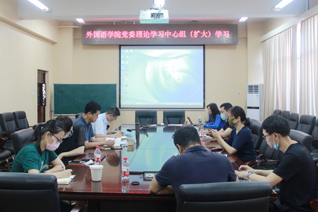 6月10日上午,外国语学院党委理论学习中心组(扩大)开展全国两会精神专题学习。党委理论学习中心组成员和党委委员参加学习。