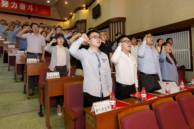 胡晗带领全体新入职教师庄严宣誓:我志愿成为一名人民教师,忠诚党的教育事业,遵守教育法律法规,履行教书育人职责,引领学生健康成长,传承“延安根、军工魂”红色基因,秉承“德以明理、学以精工”校训精神,做到有理想信念、有道德情操、有扎实学识、有仁爱之心,为教育发展、国家繁荣和民族振兴努力奋斗!誓言铿锵,表达北理工新一代青年教师们投身教育事业、续写北理辉煌的决心。