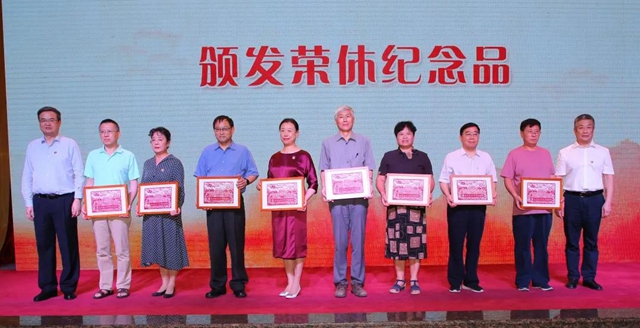 “春风化雨育桃李,倾尽丹心铸师魂”,大会第一篇章“感恩·师缘”在温馨的荣休教师代表采访视频中拉开序幕。为感谢退休教师群体为学校发展作出的突出贡献,本次大会为2019至2020学年退休教师举行了隆重的荣休仪式,校党委书记赵长禄、校长张军为李海龙、王丽琼、马树元、崔小虹、白廷柱、钟漫如、张强、罗振生8位荣休教师代表颁发纪念品。
