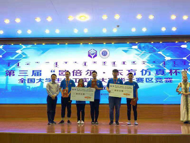 团体特等奖(共五所高校)的代表领奖(右一蓝色队服者为北理工代表) 6月29日至7月1日,在内蒙古自治区呼和浩特市举行的第三届...