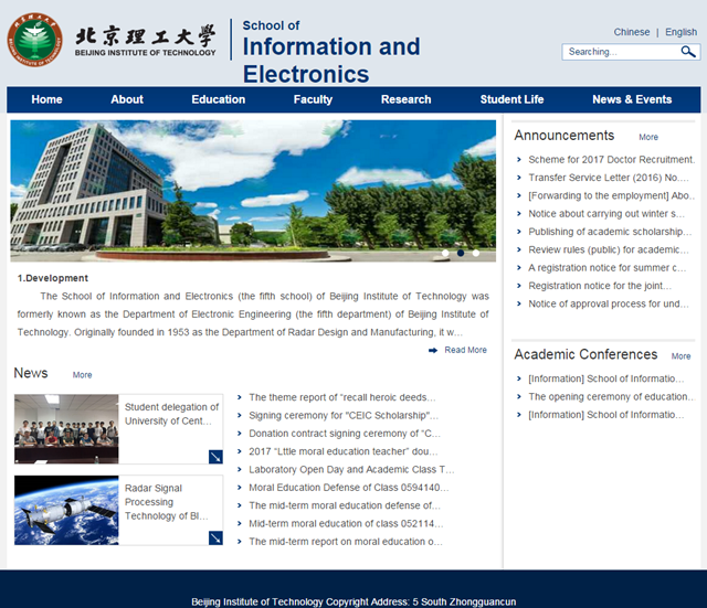 5月19日,信息与电子学院英文网站正式完成建设并上线运行,这是我校第6个正式上线运行的二级学院英文网站。2014年起,面向“双一流”建...