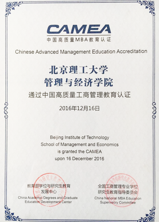 北理工管理与经济学院通过中国高质量MBA教育认证
