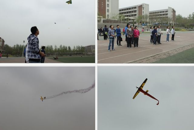 航模表演于4月17日在良乡校区举行,由航模队同学带来了“纸飞机”编队飞行、单机拉烟、3D特技机飞行、模型火箭发射回收等表演项目,赢得了现场观众的阵阵掌声。