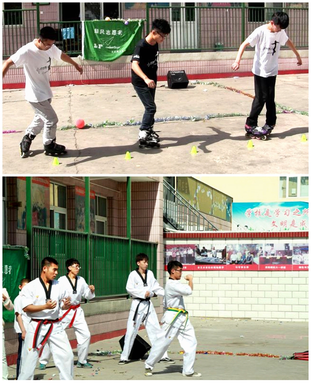 另外,为了给希望学校的孩子们带来一场不一样的联欢会,绿风还特别邀请了德赢AC米兰官网“酷爱轮滑社”和“跆拳道协会”来参加我们的六一联欢会,这两个节目给会场带来了高潮,孩子们都被大哥哥大姐姐们精彩的表演所震撼,台下掌声雷动,经久不息。