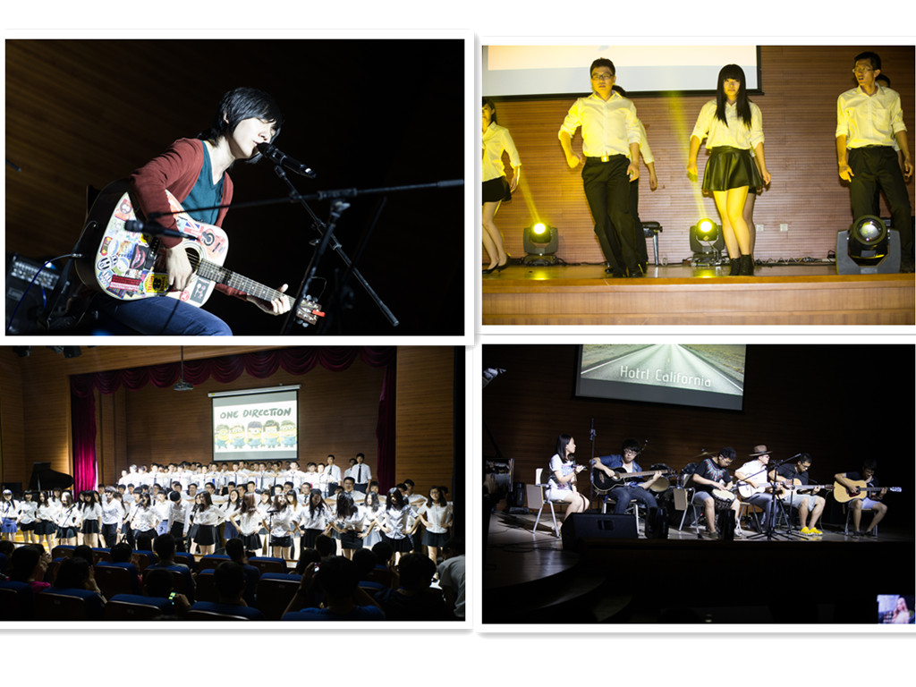 由课上同学们演唱的迈克尔杰克逊在1985年为非洲灾民创作的《We are the world》和由金炜航带来的舞蹈《Dangerous》带大家一起重温了经典;丰小艺、佳凯迪、刘学彬的舞蹈《Hi Night》用动感的节奏和曼妙的舞姿感染了在场的每一个观众;而由窦文韬等同学深情演唱的《波西米亚狂曲》和由符之焕、韩欣欣动感而激情演绎的《We will rock you》将皇后乐队作品的经典演绎得淋漓尽致:由课上五位女孩组成的some girls为大家带来的一组精彩的名曲串烧给大家带来别样的视听感受;深秋冠军韩欣欣一首《Don’t know why 》的倾情演唱感动全场。