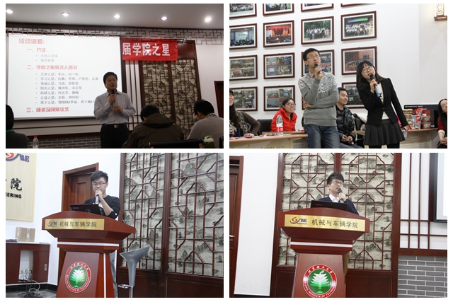 机械与车辆学院“学院之星”评选活动自2002年起办,每年年终推选出在各方面表现突出的青年学生。去年开始,该活动以“机械星工坊”的品牌来开展,一方面发掘表现突出的个人,作为“星”并推送至青春榜样库;另一方面,将该年度培育“星”最多的集体授予“机械星工坊”荣誉称号,促进基层团支部建设。2014年12月29日,本年度“机械星工坊——学院之星”评选活动决赛在车辆实验楼报告厅举办,通过选手展示、现场投票等环节,本年度的各类“星”及“机械星工坊”得以产生。