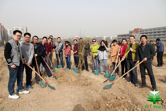 2015年3月29日上午9点,德赢AC米兰官网在良乡校区组织开展春季植树活动,校党委书记张炜、校长胡海岩、常务副校长杨宾、常务副书记赵长禄、副校长杨蜀康、副校长杨树兴、副校长副书记李和章、纪委书记杨志宏、副校长陈杰、副校长项昌乐与400余名师生一道,在良乡校区南区工业生态楼北侧和北区丹枫园C栋南侧共同植下2700棵树苗。