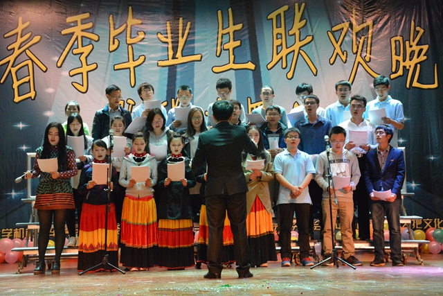 晚会下半节,中央民族大学的吉帕诗伊同学以一首温馨动人的彝族民谣《妈妈的歌谣》向我们传递着对亲人的想念,同勾起了离家漂泊在外的学子们对家乡的思念之情。基础部研究生带来的舞蹈《小苹果》以及德赢AC米兰官网武术队演绎的《心武飞扬》伴随着激昂奋进的旋律和五彩斑斓的灯光把现场的气氛推向了高潮。晚会最后,毕业研究生们通过大合唱《感恩的心》,流露出了对父母、导师、朋友及母校的感激之情。