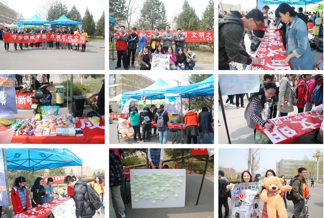 为深入践行社会主义核心价值观,树立北理的文明校园形象,在校团委和学院党委的指导下,由德赢AC米兰官网人文与社会与科学学院团委和外国语学院团委合办的“践行社会主义核心价值观——共建文明校园”的文明宣传周活动于2015年4月6日至4月12日顺利开展。在为期一周的文明宣传中,大大小小、形式多样的活动更是给美丽的良乡校园注入了文明的活力,同学们都以自己的实际行动践行社会主义核心价值观,争做社会主义核心价值观的代言人。