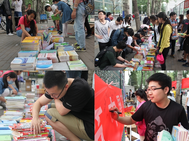 4月28日,爱心书籍赠送活动在中关村校区新食堂北侧活动场地如期举行,活动之前,宇航、光电、信息、自动化和化工等5个学院的励志中队队员将事先整理好的书籍运送到活动场地,分类摆放整齐。活动中,在同学们认真挑选书籍的同时,各学院队员向前来领取书籍的同学介绍不同学院不同专业所需的书籍,保证物尽其用,让前来领取书籍的同学都能领取对自己最有帮助的书籍。领取书籍的学生在横幅上记录下自己的名字,表达了对捐赠书籍同学的感谢。在短短两个小时内,路过的同学及老师,包括食堂工作的阿姨共计200余人前来领取书籍,赠书总数近1200册。