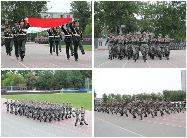 在威武雄壮的《分列式进行曲》中,执旗方阵、裁判员方阵和4个年级的国防生方阵步伐整齐、口号洪亮,先后通过主席台接受领导检阅。2013级国防生为主席台领导进行军体拳表演。