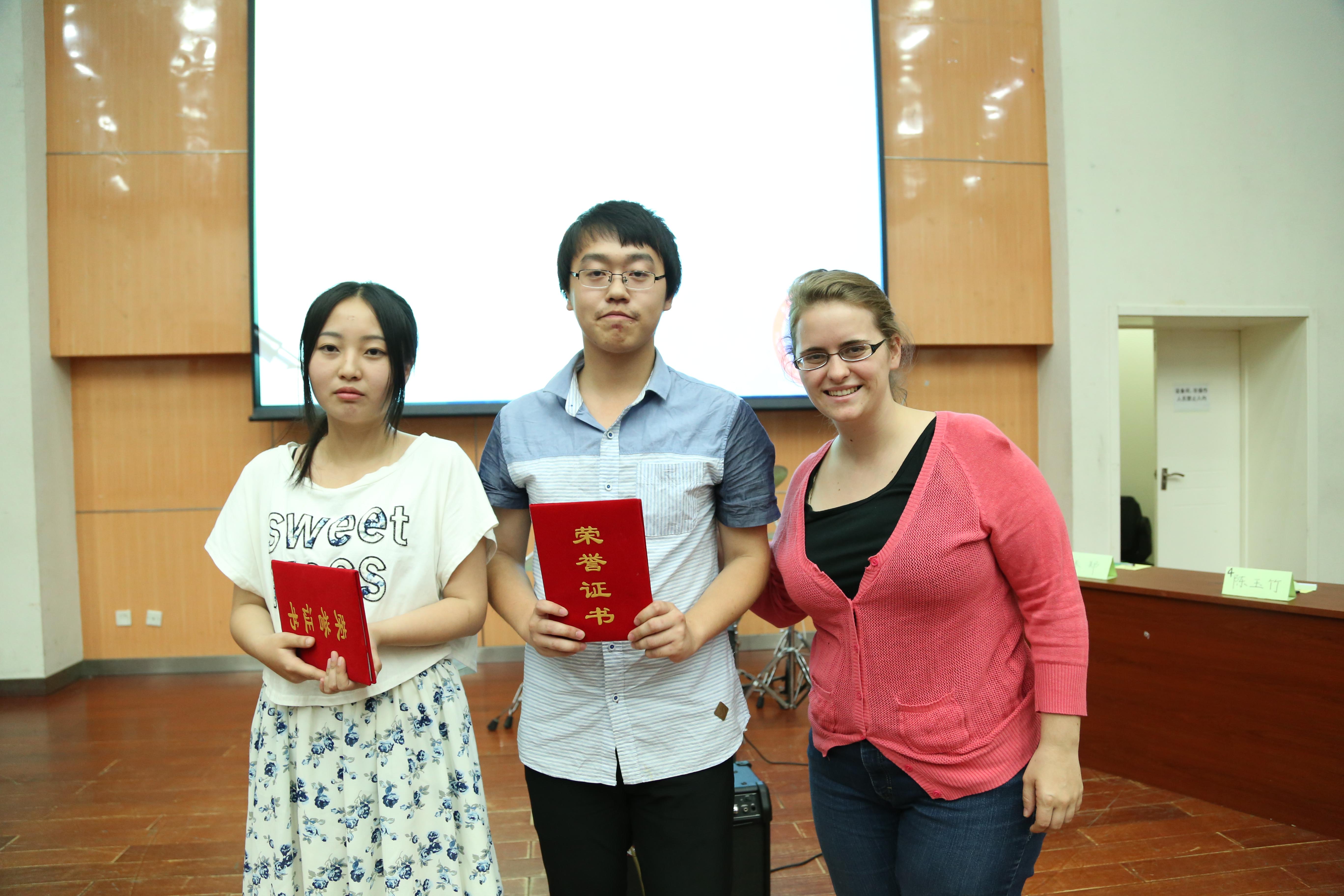 最终,陈玉竹、张郑和陆天和同学获得了三等奖,黎琼、孙航同学获得二等奖,何鑫同学荣获本次大赛一等奖,评委们为他们颁发了证书。