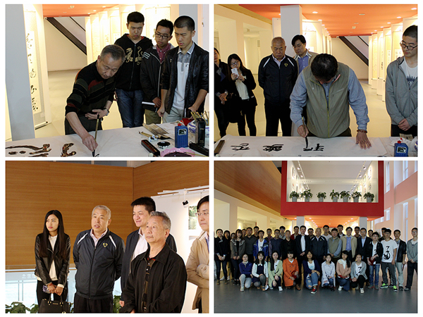 5月11日上午,艺术节之“首都高校书画摄影联展”启动仪式在艺术馆举行。来自北京十七所高校书画作品作者代表50余名参加了本次仪式。党委副书记、副校长李和章,校团委书记蔺伟,中国书法家协会会员、青年书法家袁乙平,校书画摄影协会副会长黄发荣,教工书画协会会长徐思军出席了启动仪式。李和章在仪式上致辞并为获奖作品颁奖。仪式结束后,大家一同参观了现场作品,师生一齐挥毫泼墨书写了《百德图》。