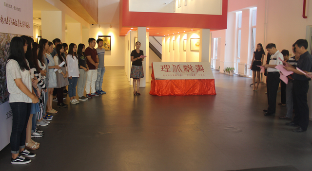 项昌乐与郭宏共同为大赛优秀作品展览揭幕,并为获得一二三等奖的同学颁奖,设计学院2014级硕士研究生李爽同学作为获奖代表发言,她表示此次比赛不仅为学生提供了展示自己绘画水平的平台,并能通过这次比赛表达对母校的感激之情,为校庆献礼。