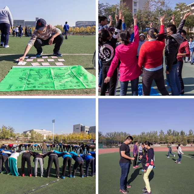 此次素质拓展活动在良乡校区北区篮球场、南区篮球场和南区足球场同步进行。活动邀请到34位专业培训师,历时9个多小时完成了对于来自136个班级的2015级新生的素质拓展训练。
