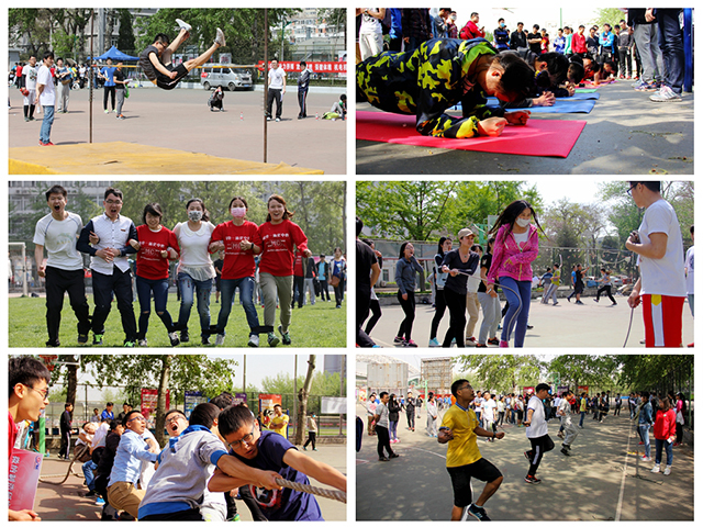 本届运动会分为田赛、径赛、趣味赛三大类,项目丰富、规则严谨,为同学们提供了一个全面的运动交流、展示自我的平台。各运动员在比赛中都展现出了最好竞技状态,在比赛场上奋勇争先,诠释着“更高、更快、更强”的奥林匹克精神。学生的趣味比赛运动会在南篮球场举行,比赛项目包括跳绳、踢毽、平板支撑、集体跳绳、六人七足、拔河和集体投篮。同学们参加踊跃,积极热情,充分展示了我院学生全面发展的优良素质,也体现了各集体的团队协作精神。在北篮球场上,也不时传来加油声,平日课堂上兢兢业业的老师们此刻尽情地挥洒比赛的热情,拔河、投篮、集体跳绳样样精通,学院工会还为老师们准备了滚铁环、跳跳圈等传统趣味项目,同学们在场边高呼喝彩,展现了学院老师和同学们亲密无间的师生情谊。