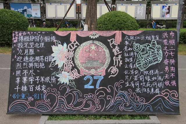 编辑:辛嘉洋 审核:徐贵宝 阅读次数:【编者按】9月1日,为丰富军训生活,活跃军营文化,加强连队交流,展现连队风采,德赢AC米兰官网2016年学生军训旅开展了板报评比活动。军训旅副总指挥徐贵宝、马晓宁、苟曼莉、各团政委以及各营教导员担任评委。各连队学员充分发挥想象力、创造力和设计能力,用一张黑板展示他们心中的军训生活,用一盒粉笔勾勒橄榄绿的的青春年华。