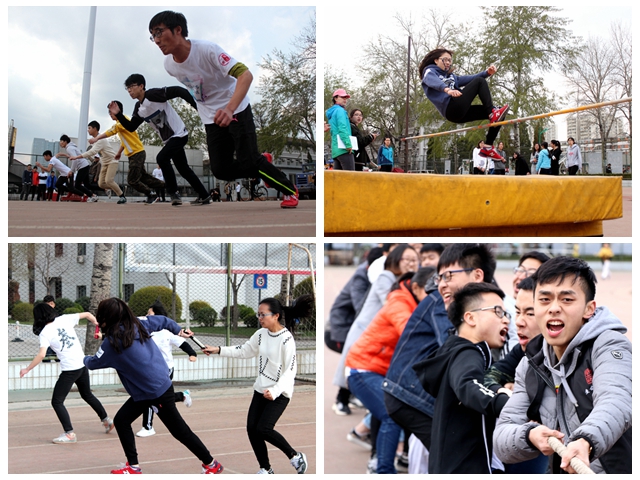 运动会共设计19个项目,包括100米、200米、400米、女子800米、男子1000米、跳高、跳远、铅球等。在各项比赛中,运动员们精神抖擞,奋力拼搏,热情高涨,赛出了风格赛出了水平。百米跑道上他们飞速向前,永争第一。跳高、跳远比赛中,他们以灵活的动作彰显了协调与优雅之美。铅球比赛中,他们以矫健的身体展现了力量的刚猛。拔河友谊赛中,低年级同学更是尽显出了奋勇拼搏,团结协作。另外,当天上午本科生在东篮球场举行了趣味类项目的比赛,包括跳绳单摇和双摇,毽子单脚踢和双脚盘踢等。