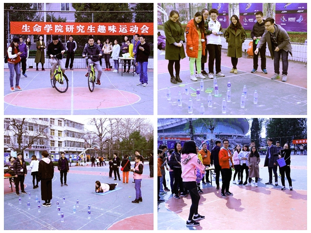 与此同时,运动会来设计了“运动,让生命更精彩”为主题的研究生趣味运动项目,包括哪吒闹海(套圈)、“静止”的小黄车(自行车慢骑)、Let’go、知识带我飞、乌鸦反哺、我的篮球梦等。运动会中,研究生同学在科研学习之余,积极参加体育活动,放松了身心,缓解了压力。