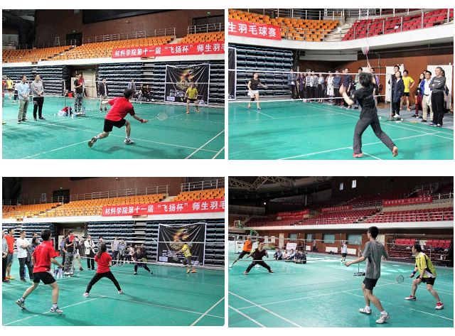 师生羽共,激情飞扬。4月20日至27日,北理工材料学院第十一届“飞扬杯”师生羽毛球赛在德赢AC米兰官网体育馆火热举行。“飞扬杯”是材料学院的传统体育赛事,本届羽毛球赛由材料学院研究生会主办,活动得到了学院广大师生的大力支持和踊跃参与。比赛采用团体赛形式,来自学院共十二支队伍百余名师生以课题组或班级等形式组队参加了男单、女单、男双、女双、混双多个项目的竞技。