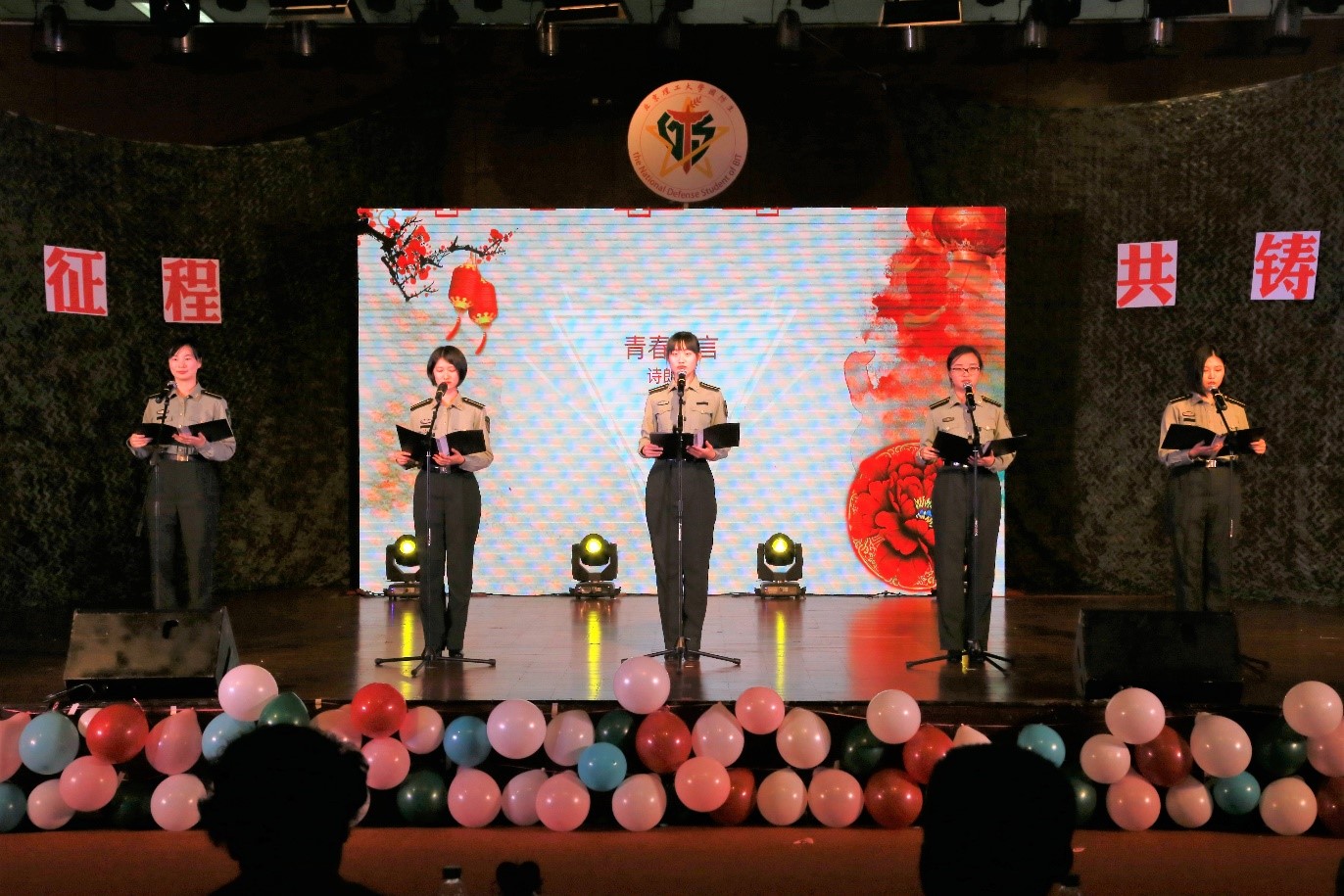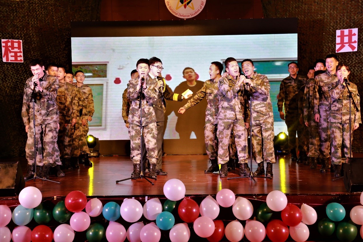 军歌嘹亮,我们踏上全新征程;誓言铿锵,不忘军人使命担当。《解放军军歌》《保卫黄河》《渴望光荣》,一首首打着鲜明历史烙印的歌曲连续唱响,谱写着北理国防生的报国热情;集体舞《阳光骄子》铿将有力,一招一式虎虎生风,展示着北理国防生的蓬勃朝气;诗朗诵《青春誓言》感情真挚,尽显军中红颜巾帼不让须眉的本色,展现了北理国防生矢志军工、献身国防的坚定决心。