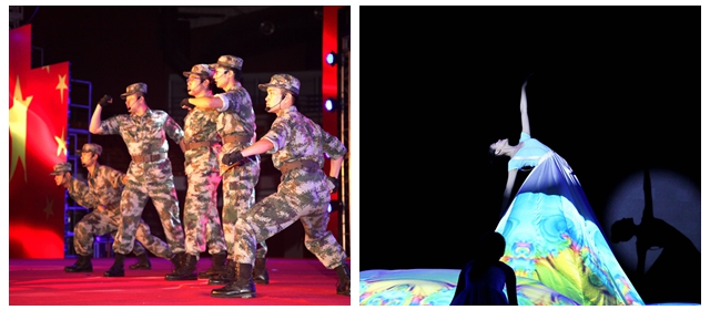 相识北理工,青春梦飞扬。在开场舞《拥抱新时代》中,各学院毕业生代表以走秀的形式闪亮登场,在巨幅校旗的覆盖下,同学们脱下学位服,亮出各具特色的毕业文化衫,象征着走出母校,走上建功立业的新征程。近两届深秋歌会中脱颖而出的校园歌手在情景歌舞《印象•北理工》中,演绎了同学们从入学到毕业的经典场景。留学生代表带来的舞蹈《宝莱坞》,既反映了留学生在北理工校园学习实践成长的经历,更反映了学校积极服务“一带一路”等国家重大战略、加强国际交流合作的丰硕成果。