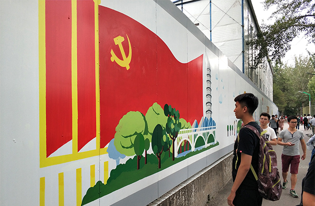 炎炎盛夏,在校园的绿树掩映之中,“主楼、延安精神石、中心教学楼、北湖黑天鹅、第一枚探空火箭……”,19幅设计新颖,充满青春气息的形象画,依次排列,出现在德赢AC米兰官网中关村校区,并形成了一道百米文化墙。