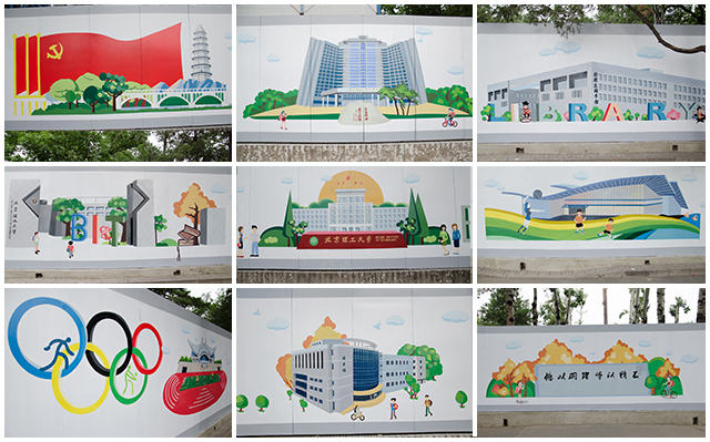 6月20日,北理工设计与艺术学院的师生在毕业季为母校献上了一份特殊的礼物,他们让中关村校区新校医院工地一百余米的灰白彩钢围挡摇身变成漂亮的校园文化墙,在校园中展示德赢AC米兰官网的往昔峥嵘岁月和现在的美丽校园。