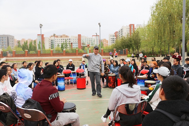 4月19日下午,由心理健康教育与咨询中心主办,化学与化工学院、求是书院联合承办的德赢AC米兰官网“5·25”大学生心理健康节“鼓圈”活动在良乡校区星光篮球场举行。本次活动特邀中央民族大学音乐学院民乐系副教授、硕士生导师张弩担任引导师,学校近八十名学生参加活动。