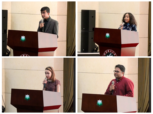 2019届航空宇航科学与技术专业巴基斯坦籍硕士毕业生那一德作为校友代表发言,在校期间学习成绩优异的他表示,是北理工提供了优秀的学习平台和广阔的发展空间,使自己不断取得进步和突破,他希望各位新同学能够珍惜机会、把握机遇,勇于追求自己的梦想。在校生代表、2016级计算机科学与技术专业乌干达籍本科生懿虹分享了自己选择北理工的初心和成长的经历,寄语新生要明确个人目标、制定学习计划,为实现价值和梦想而不懈努力。新生代表、计算机科学与技术专业马来西亚籍硕士生米兰在发言中表达了自己对即将开始的“留学北理”生活的期望,鼓励新生要给自己树立一个目标,并为之拼搏和奋斗。新生代表、令闻书院俄罗斯籍本科生安娜讲述了自己选择中国和北理工的原因,家中几代人从事航天领域方面的工作,使从小就喜爱中国文化的她深受影响,而北理工强大的科研实力使她坚信这里就是开启自己梦想的地方,希望自己在“留学北理”中迎来成长和蜕变,为人类的航空航天事业贡献力量。