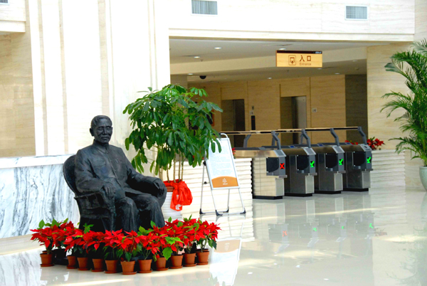 同时,在高教所、良乡校区管委会、图书馆等单位的努力下,学校还在良乡校区徐特立图书馆落成了一尊徐老坐式全身铜像,高约1.6米。