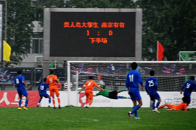 下半场主队开始加强进攻,第63分钟武方虎左路突破造成对方犯规,获得任意球机会,阿尔法主罚,皮球直接吊向禁区,康斯贝在乱军当中头球建功。北理工1比0领先南京有有。