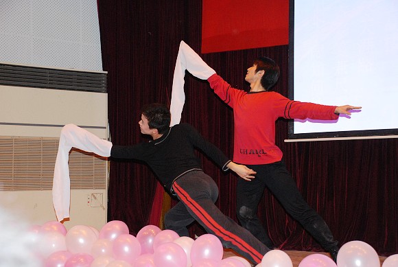 来自北京舞蹈学院的学生表演的精彩舞蹈“诗乐舞·梁祝”博得师生们阵阵掌声。