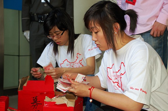 经过志愿者的现场清点,共募得善款51481元,这些包含着德赢AC米兰官网师生和体育界相关人士的捐款已于5月19中午汇入中国红十字会总会抗震救灾专用帐户,为抗震救灾献出了自己的一份力量。