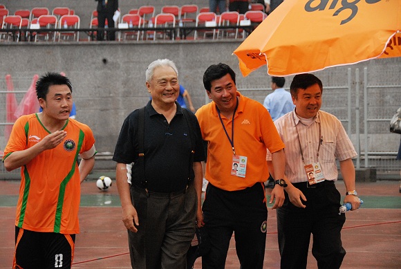 赛后,年维泗老先生应邀来到球队中间,谈了今天观赛的感受。他说:“今天的比赛是我的学生和我学生的学生带队进行的比赛,看了比赛之后,最大的感受是:大家的精神面貌非常好,都把精力放在了踢球之上,我不用担心场上会发生足球以外的乱七八糟的事情。大家也知道,今天晚上国家队还有一场对伊拉克的比赛,但大家却都很担心。”