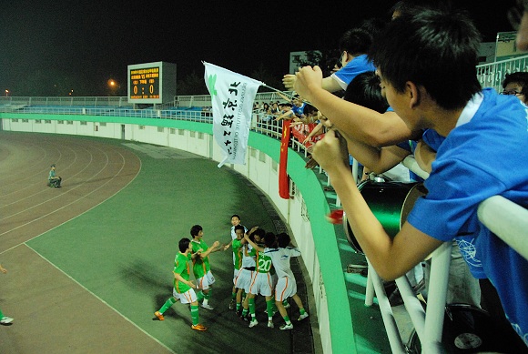 在6月7日客场与排名垫底的北京宏登的客场比赛中,北京爱国者大学生足球队无论是球迷数量和场上局面都“反客为主”,最终以1:0拿下了这场非常关键的保级大战,排名也由之前的第十二位上升至第九位,并领先北京宏登队7分,暂时脱离了降级区。